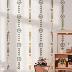 Floral Stripe Decals, Vertical Flower Wall Stripes, Scandinavian Nursery Decor, Boho Floral Wall Stickers